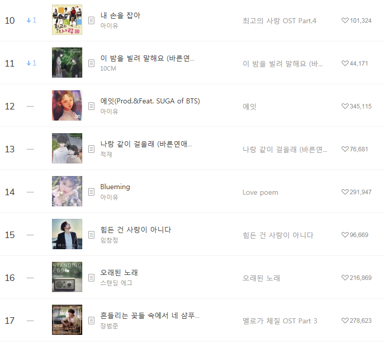 [2021년3월3일]멜론일간차트 TOP17, 1위-아이유 Celebrity(IU/셀레브리티/듣기/가사) 본문