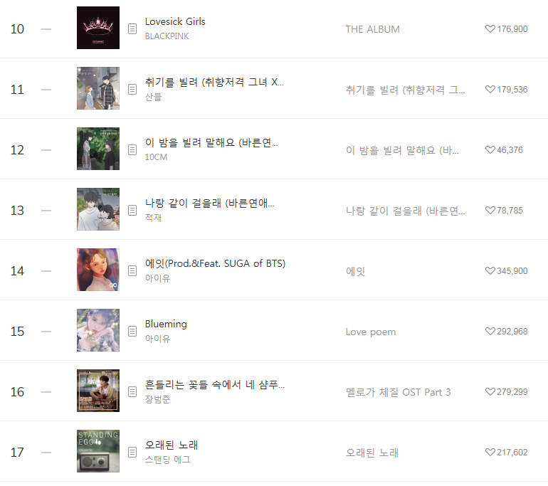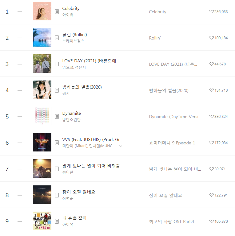 [2021년3월9일]멜론일간차트 TOP17, 1위-아이유 Celebrity(IU/셀레브리티/듣기/가사) 본문