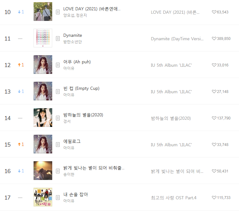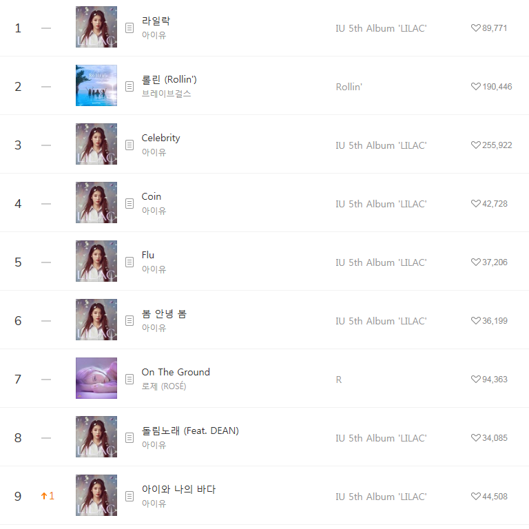 [2021년3월26일]멜론일간차트 TOP17, 1위-라일락 아이유(IU/LILAC/듣기/가사/동영상) 본문