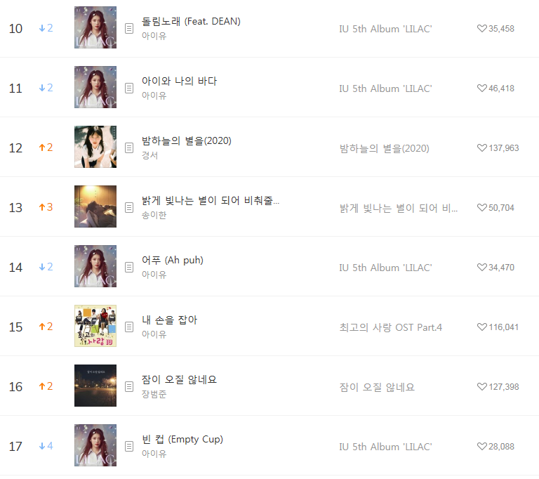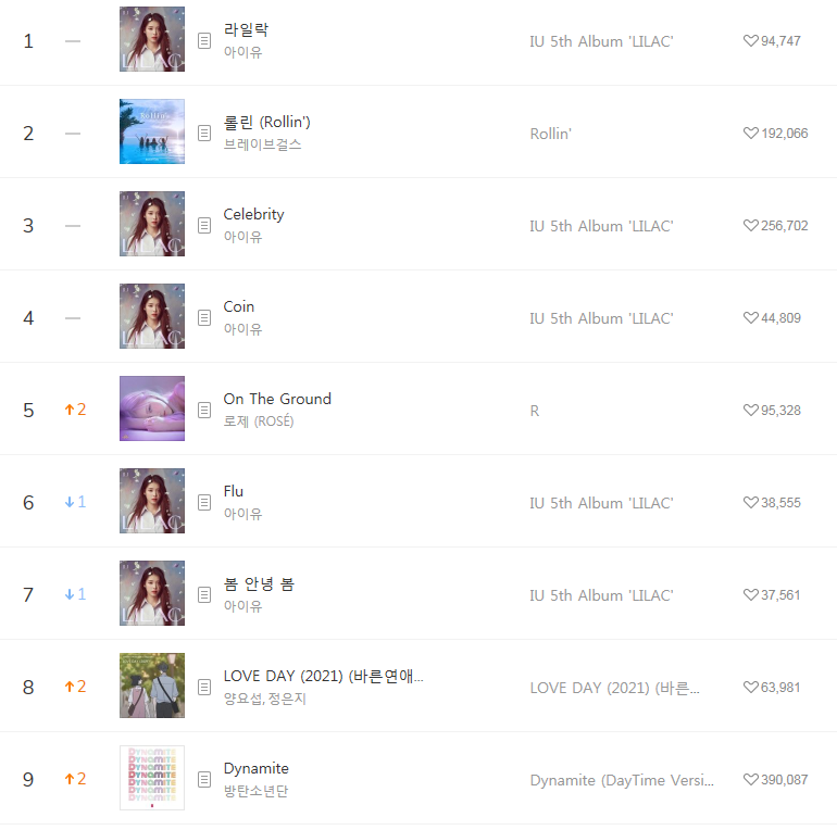 [2021년3월27일]멜론일간차트 TOP17, 1위-IU LILAC(아이유/라일락/듣기/가사/동영상) 본문