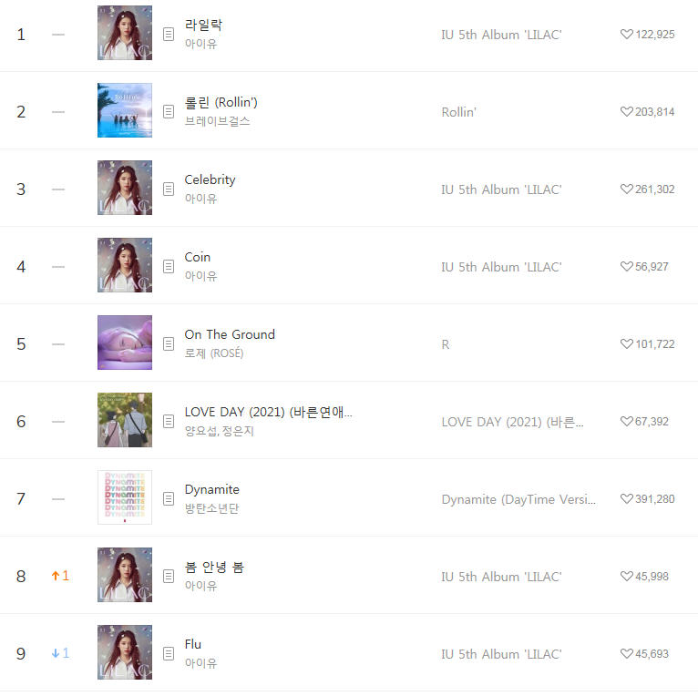 [2021년4월1일]멜론일간차트 TOP17, 1위-LILAC IU(아이유/라일락/듣기/가사/동영상)