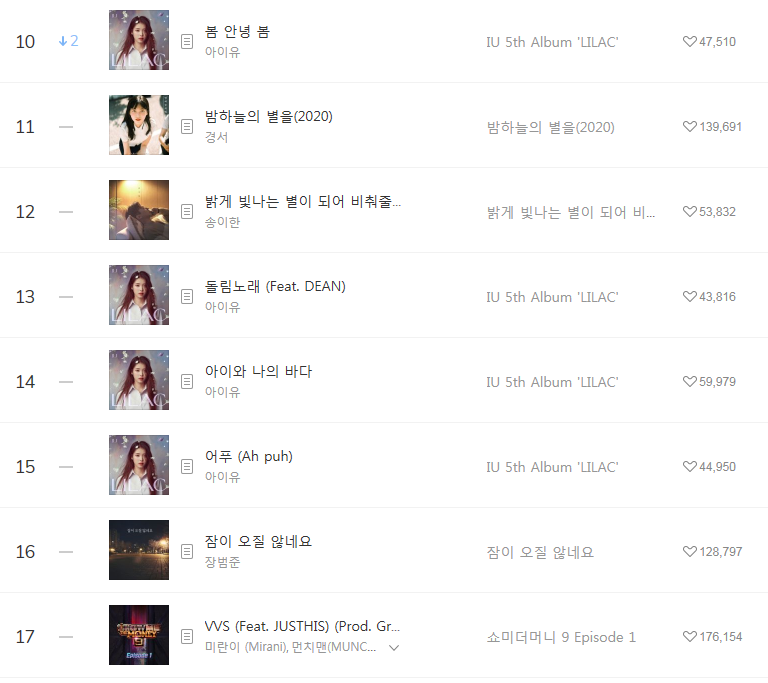[2021년4월2일]멜론일간차트 TOP17, 1위-아이유 라일락(IU/LILAC/듣기/가사/동영상) 본문