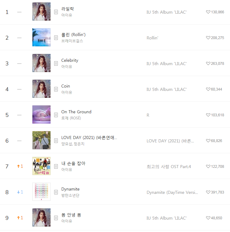 [2021년4월3일]멜론일간차트 TOP17, 1위-라일락 아이유(IU/LILAC/듣기/가사/동영상)