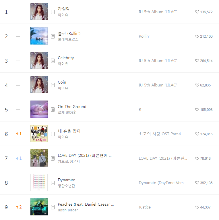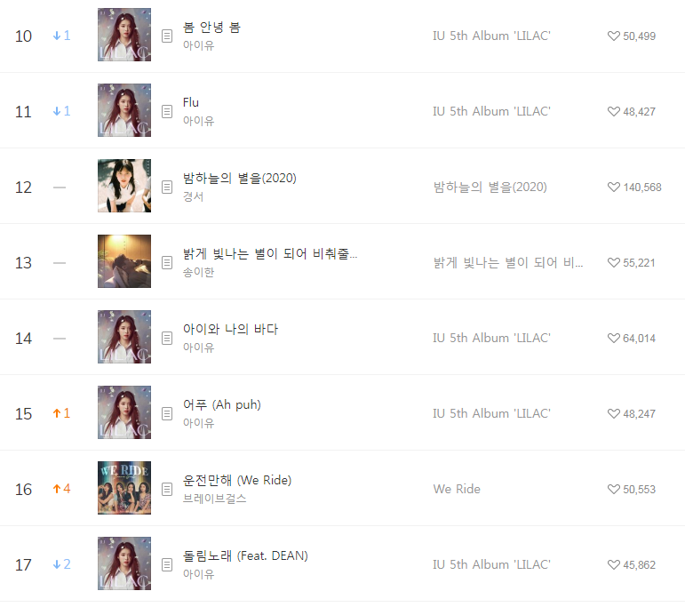 [2021년4월5일]멜론일간차트 TOP17, 1위-LILAC IU(아이유/라일락/듣기/가사/동영상) 본문