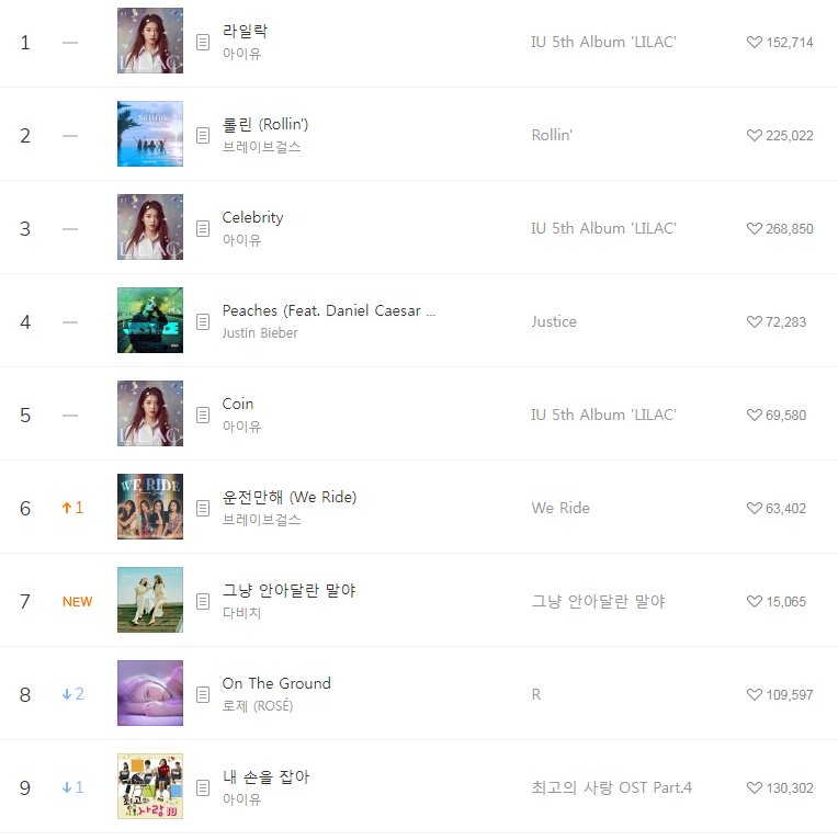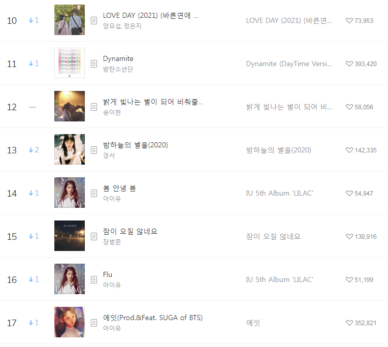 [2021년4월12일]멜론일간차트 TOP17, 1위-IU LILAC(아이유/라일락/듣기/가사/동영상) 본문