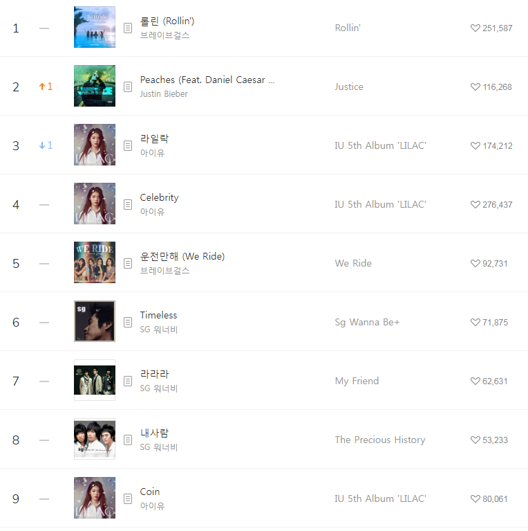 [2021년5월1일]멜론일간차트 TOP17, 1위-Rollin' Brave Girls(브레이브걸스/롤린/듣기/가사/동영상)