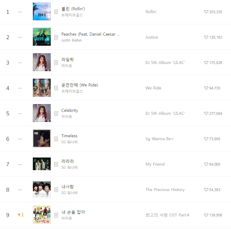[2021년5월3일]멜론일간차트 TOP17, 1위-롤린 브레이브걸스(Brave Girls/Rollin'/듣기/가사/동영상) 본문