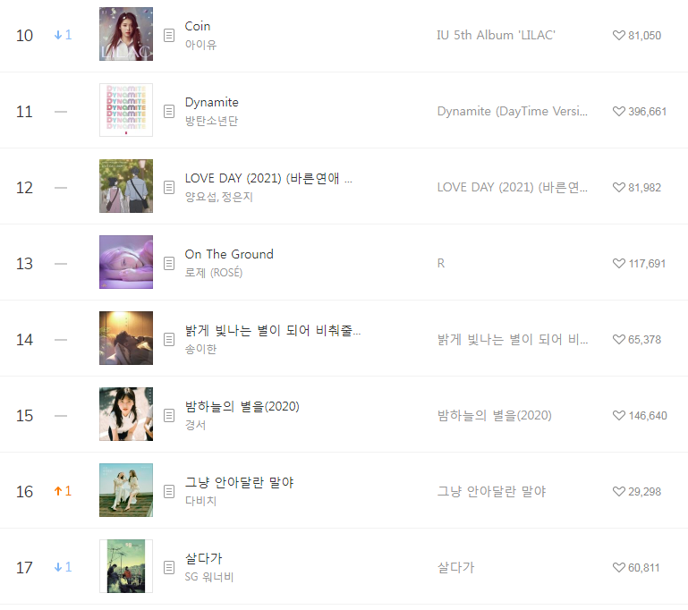 - 멜론 일간차트