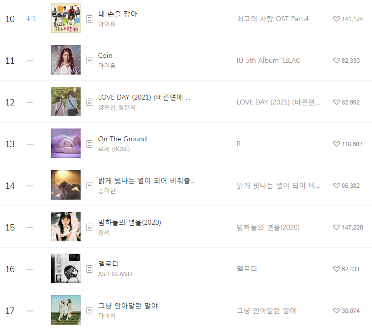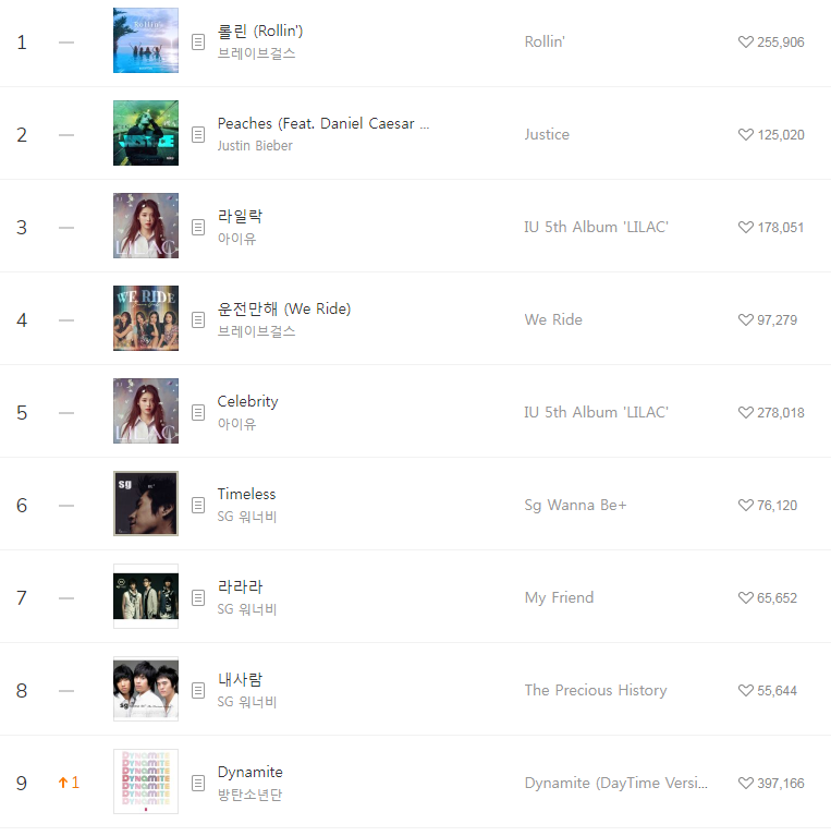 기봉이 2021. 5. 8. 15:56[2021년5월6일]멜론일간차트 TOP17, 1위-브레이브걸스 롤린(Brave Girls/Rollin'/듣기/가사/동영상)
