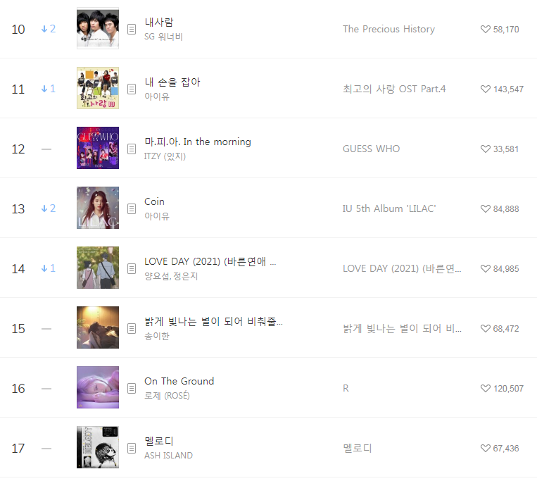 [2021년5월13일]멜론일간차트 TOP17, 1위-Rollin' Brave Girls(브레이브걸스/롤린/듣기/가사/동영상)
