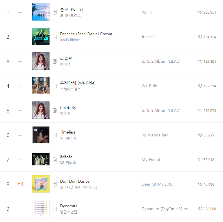 [2021년5월13일]멜론일간차트 TOP17, 1위-Rollin' Brave Girls(브레이브걸스/롤린/듣기/가사/동영상) 본문