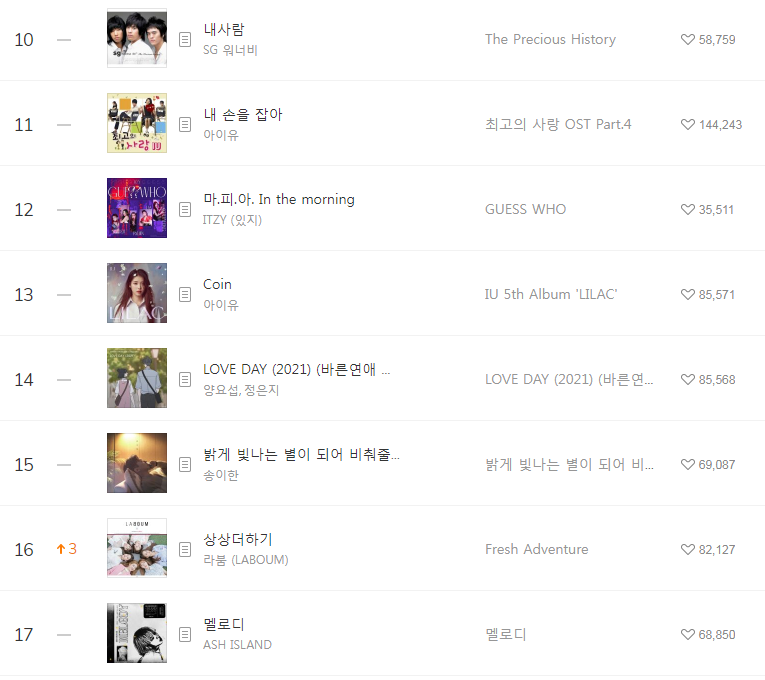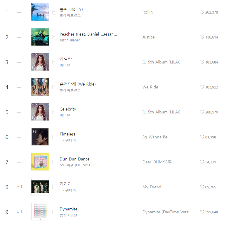 [2021년5월15일]멜론일간차트 TOP17, 1위-롤린 브레이브걸스(Brave Girls/Rollin'/듣기/가사/동영상)
