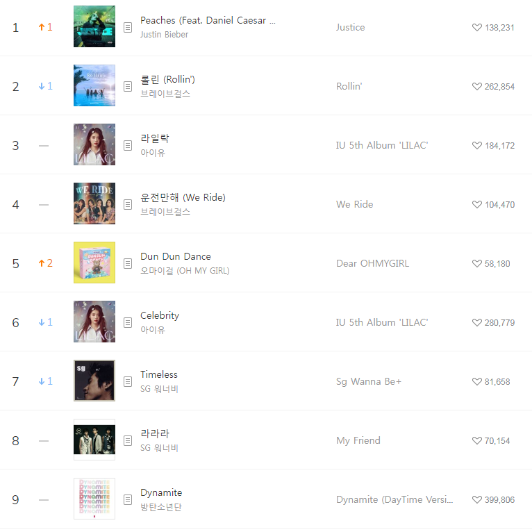 [2021년5월16일]멜론일간차트 TOP17, 1위-저스틴비버 Peaches(Justin Bieber/Feat, Daniel caesar/Giveon/듣기/가사/동영상)