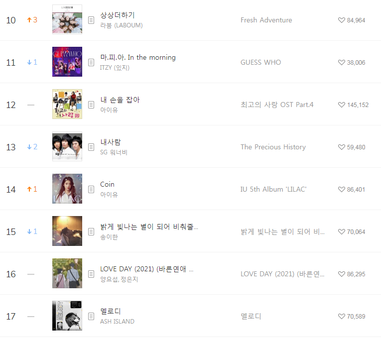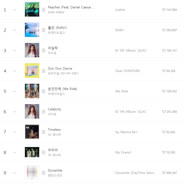 [2021년5월18일]멜론일간차트 TOP17, 1위-Justin Bieber Peaches(저스틴비버/Feat. Daniel caesar/Giveon/듣기/가사/동영상) 본문