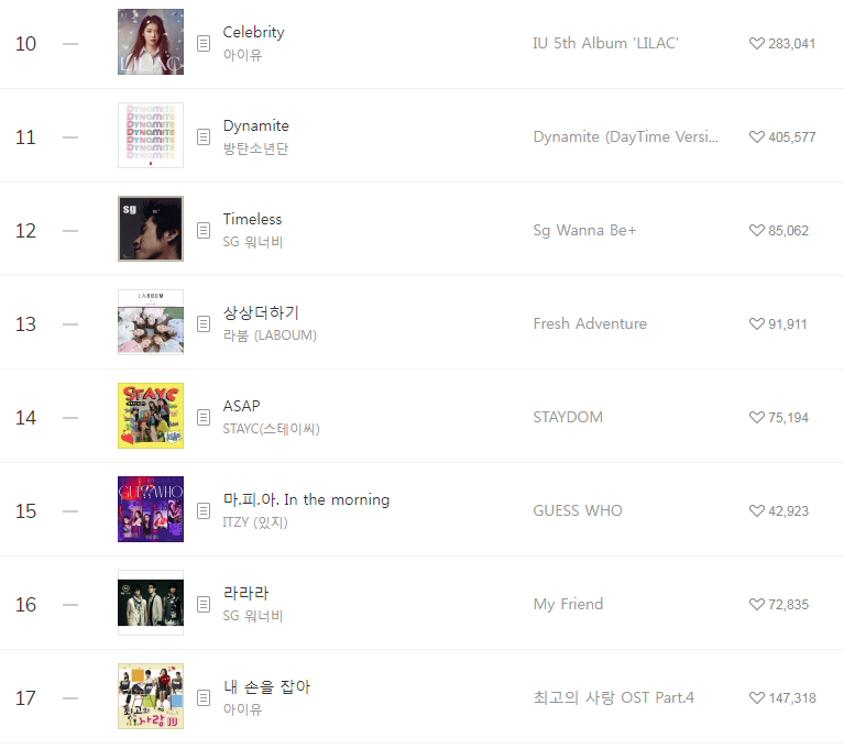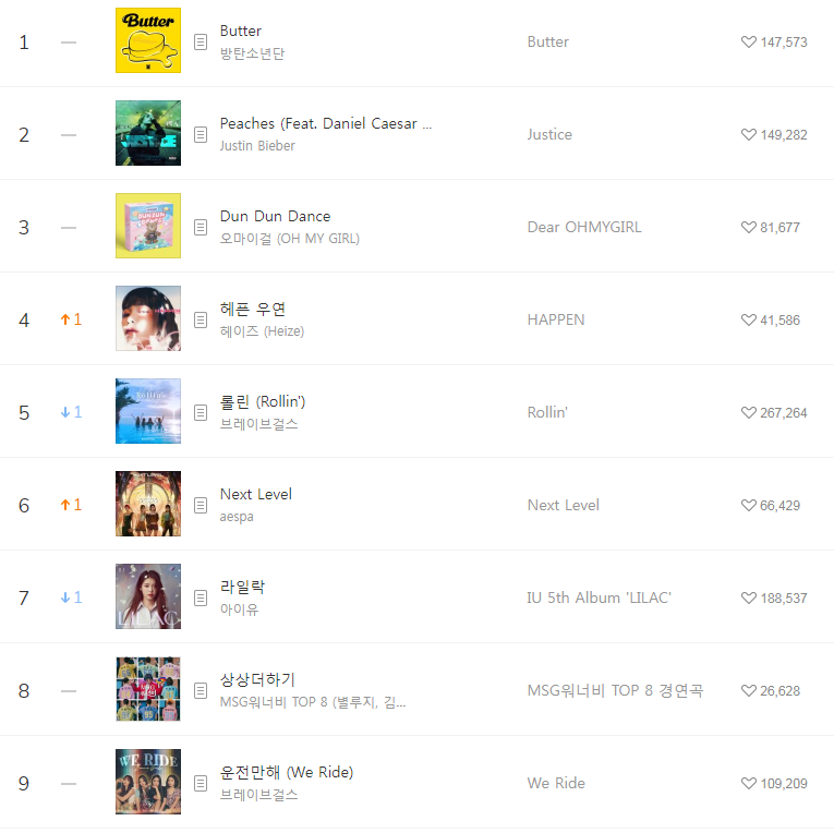 [2021년5월25일]멜론일간차트 TOP17, 1위-방탄소년단 Butter(BTS/버터/듣기/가사/동영상) 본문