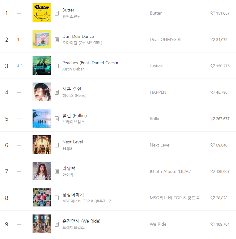 [2021년5월26일]멜론일간차트 TOP17, 1위-Butter 방탄소년단(BTS/버터/듣기/가사/동영상) 본문