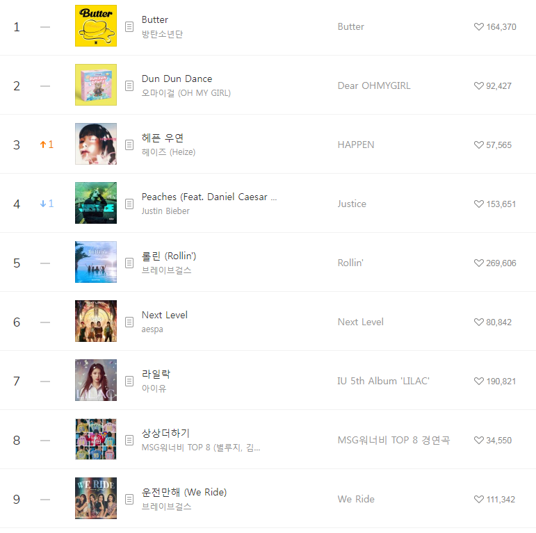 [2021년5월30일]멜론일간차트 TOP17, 1위-Butter 방탄소년단(BTS/버터/듣기/가사/동영상) 본문