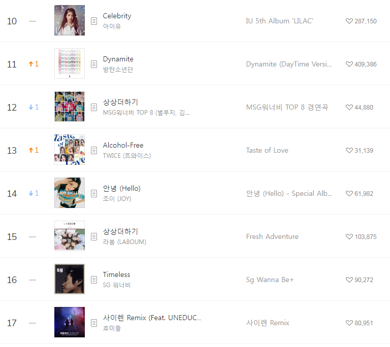 [2021년6월14일]멜론일간차트 TOP17, 1위-BTS Butter(방탄소년단/버터/듣기/가사/동영상) 본문