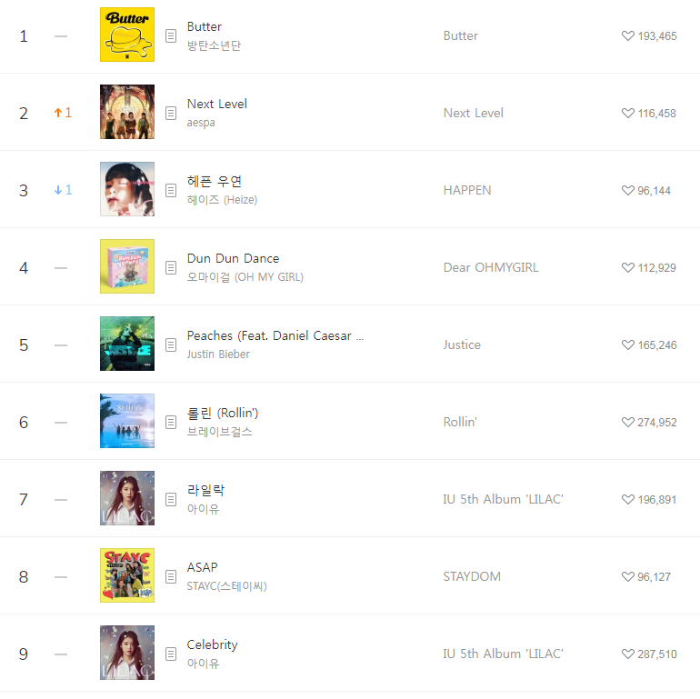 [2021년6월16일]멜론일간차트 TOP17, 1위-Butter BTS(방탄소년단/버터/듣기/가사/동영상) 본문