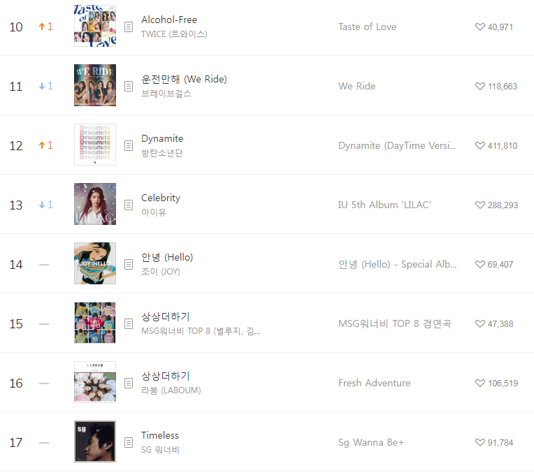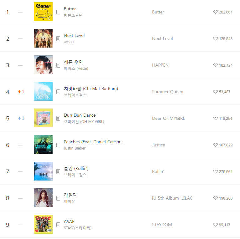 [2021년6월20일]멜론일간차트 TOP17, 1위-Butter BTS(방탄소년단/버터/듣기/가사/동영상) 본문