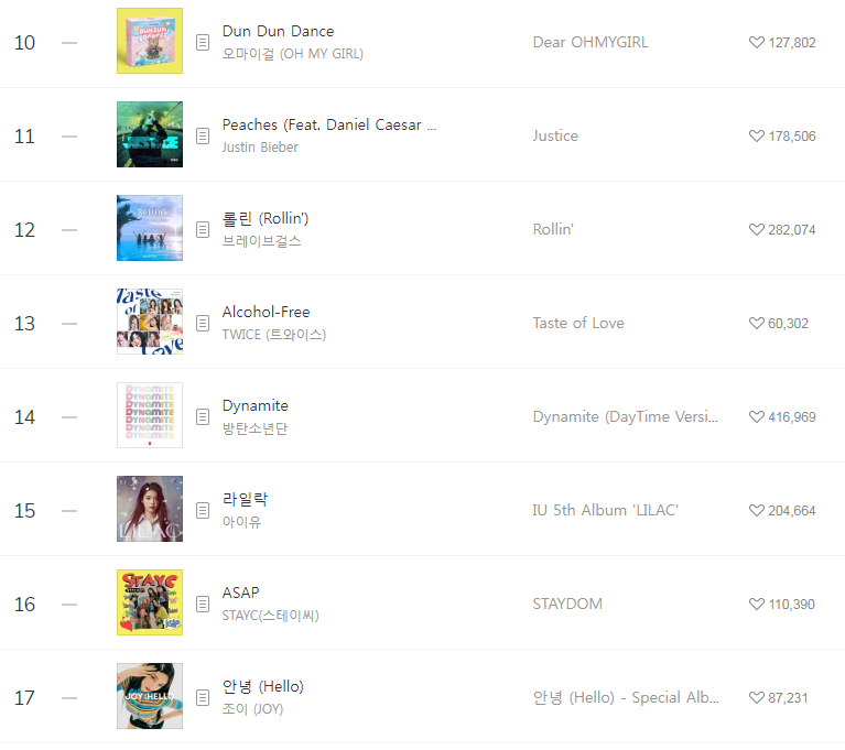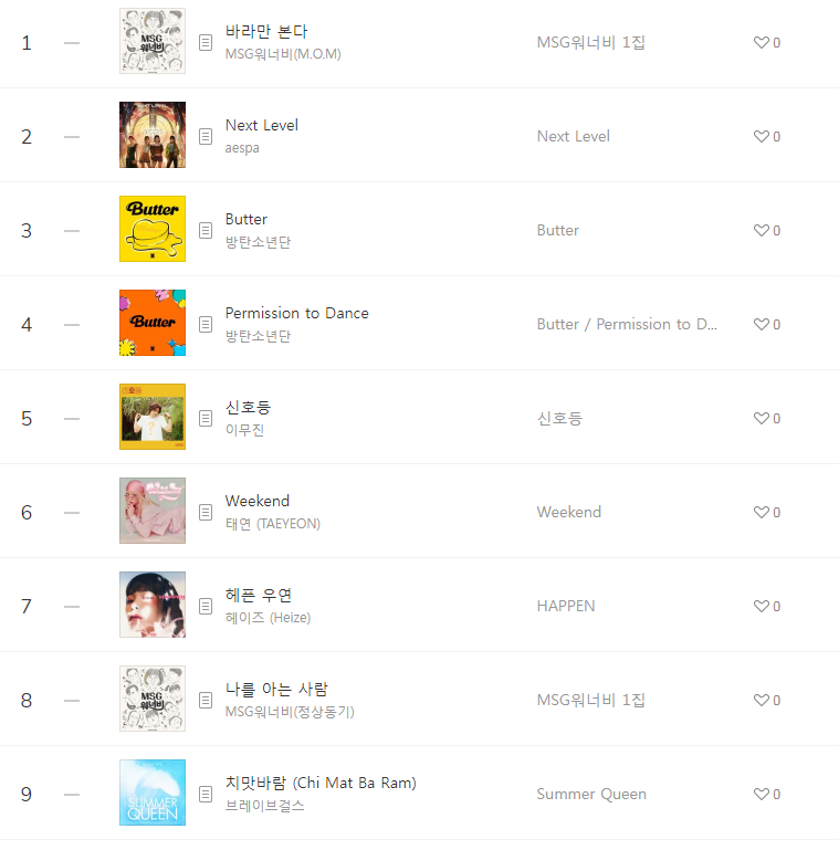 [2021년7월13일]멜론일간차트 TOP17, 1위-MSG워너비 바라만 본다(M.O.M/놀면뭐하니/듣기/가사/동영상) 본문