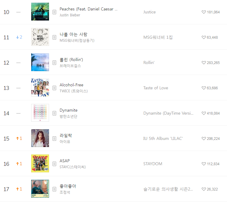 [2021년7월20일]멜론일간차트 TOP17, 1위-바라만본다 MSG워너비(M.O.M/놀면뭐하니/듣기/가사/동영상) 본문