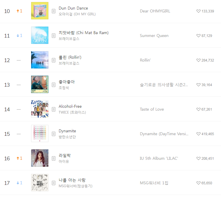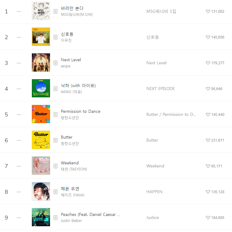 [2021년7월31일]멜론일간차트 TOP17, 1위-바라만본다 MSG워너비(M.O.M/놀면뭐하니/듣기/가사/동영상)