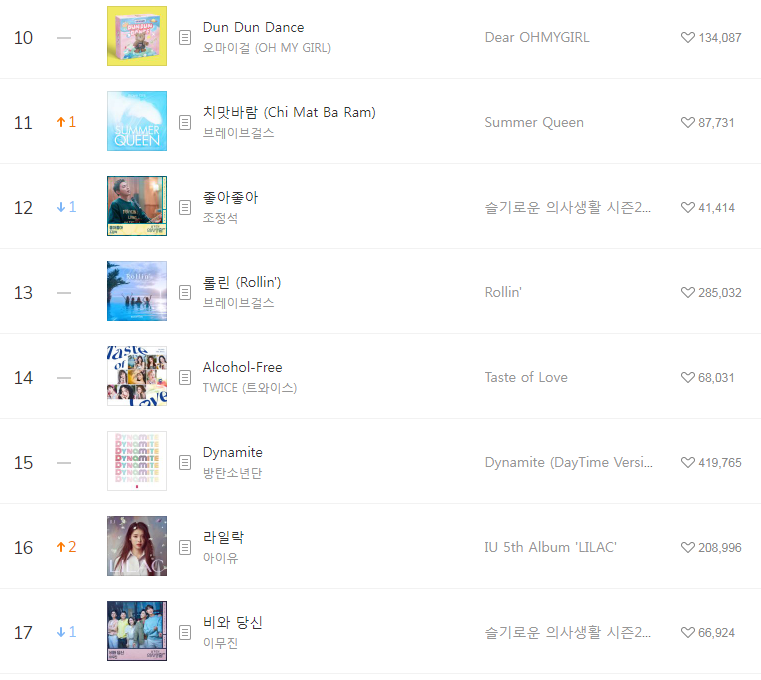 [2021년8월3일]멜론일간차트 TOP17, 1위-MSG워너비 바라만본다(M.O.M/놀면뭐하니/듣기/가사/동영상)