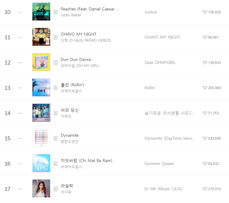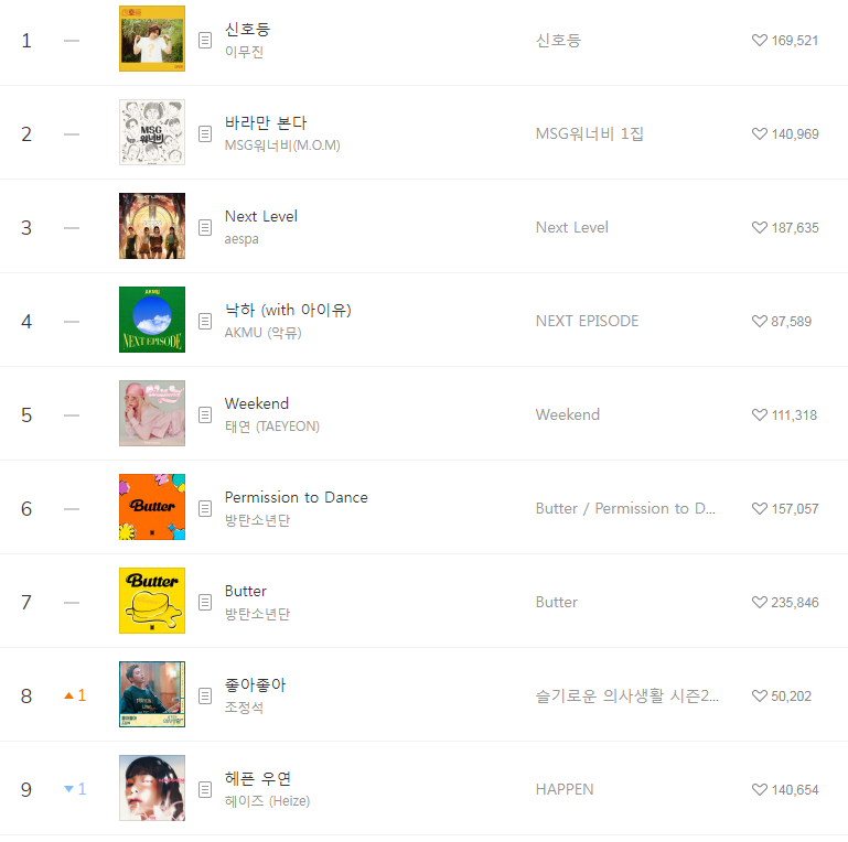 [2021년8월14일]멜론일간차트 TOP17, 1위-이무진 신호등(듣기/가사/동영상) 본문