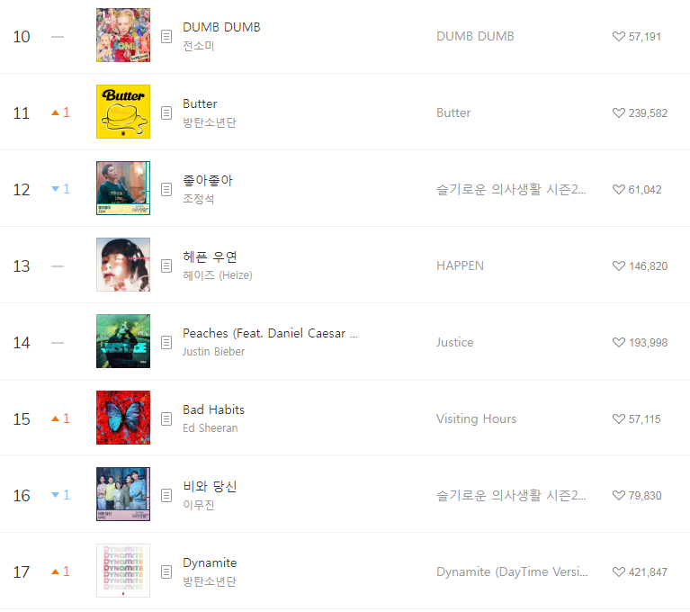 [2021년9월2일]멜론일간차트 TOP17, 1위-STAY The Kid LAROI,Justin Bieber(저스틴비버/듣기/가사/동영상) 본문