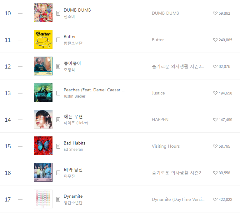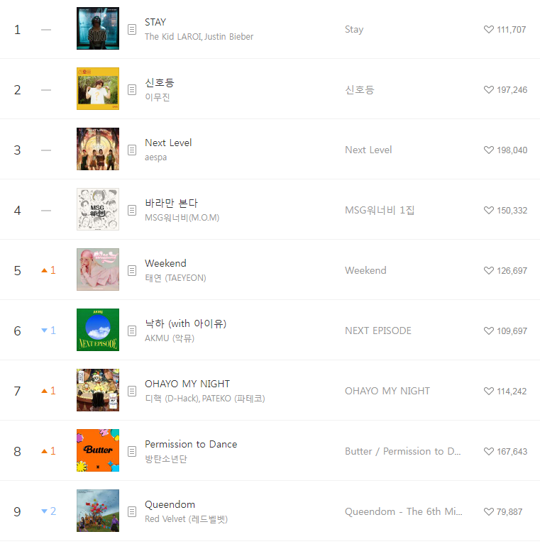 [2021년9월4일]멜론일간차트 TOP17, 1위-The Kid LAROI, Justin Bieber STAY(저스틴비버/듣기/가사/동영상) 본문