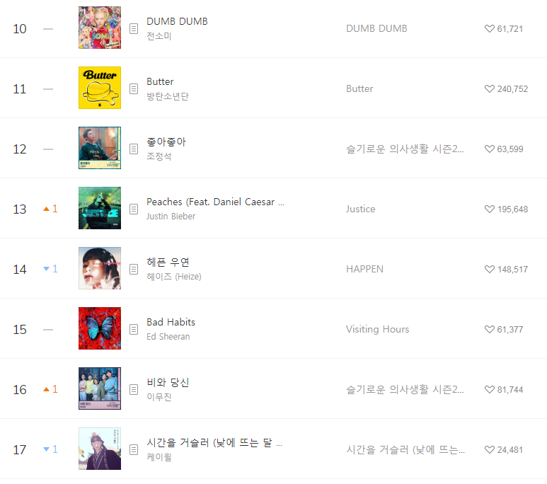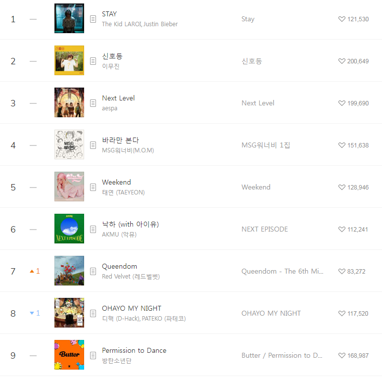 [2021년9월8일]멜론일간차트 TOP17, 1위-The Kid LAROI, Justin Bieber STAY(저스틴비버/듣기/가사/동영상) 본문