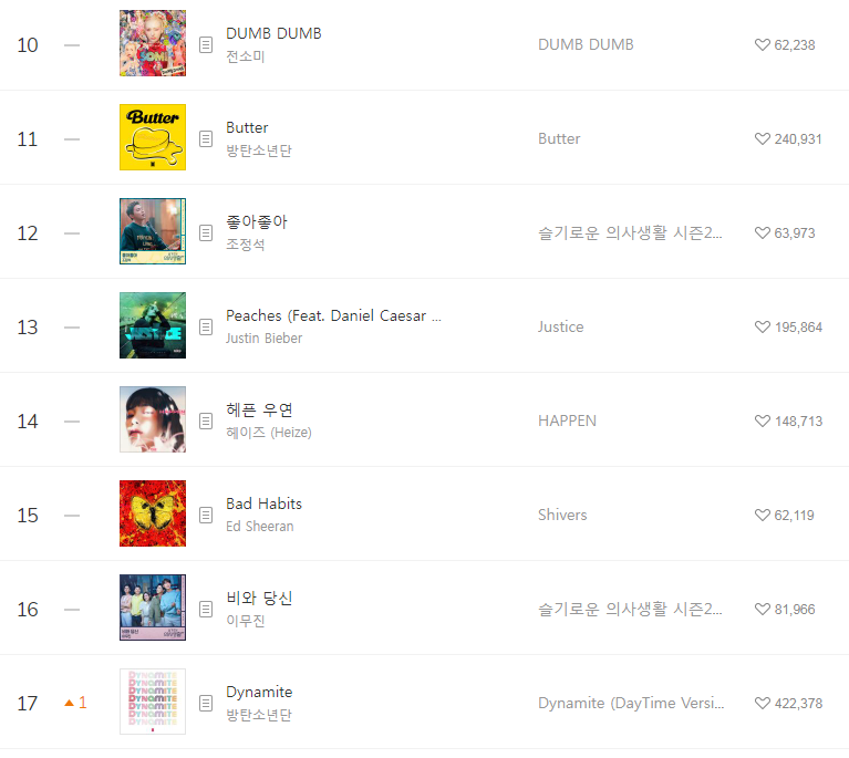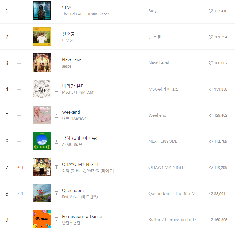 [2021년9월9일]멜론일간차트 TOP17, 1위-STAY The Kid LAROI, Justin Bieber(저스틴비버/듣기/가사/동영상) 본문