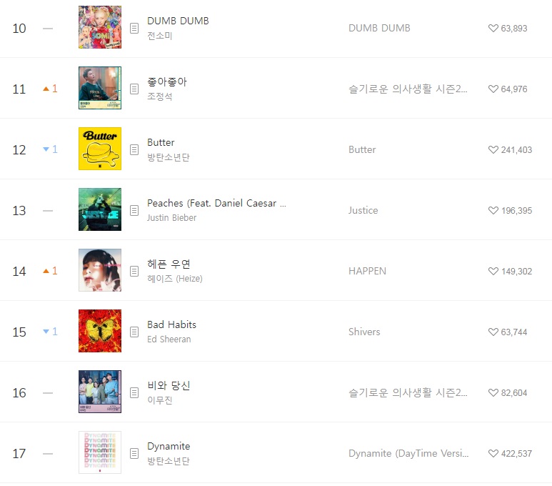 [2021년9월11일]멜론일간차트 TOP17, 1위-저스틴비버 STAY(The Kid LAROI/Justin Bieber/듣기/가사/동영상) 본문