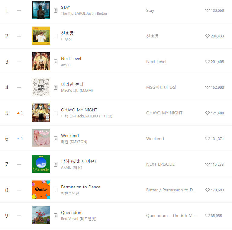 [2021년9월12일]멜론일간차트 TOP17, 1위-The Kid LAROI Justin Bieber STAY(저스틴비버/듣기/가사/동영상)