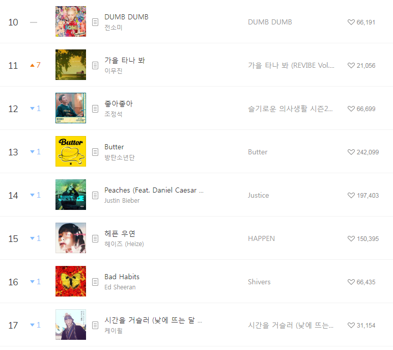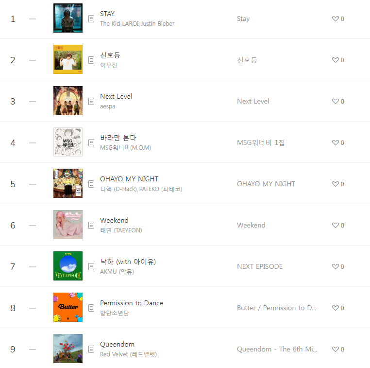 [2021년9월15일]멜론일간차트 TOP17, 1위- The Kid LAROI, Justin Bieber STAY(저스틴비버/듣기/가사/동영상) 본문