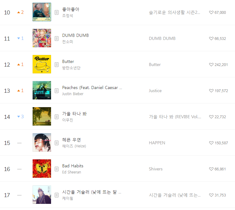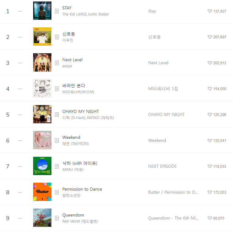 [2021년9월16일]멜론일간차트 TOP17, 1위-STAY The Kid LAROI Justin Bieber(저스틴비버/듣기/가사/동영상) 본문