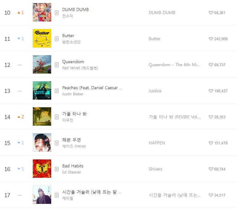 [2021년9월19일]멜론일간차트 TOP17, 1위-STAY The Kid LAROI Justin Bieber(저스틴비버/듣기/가사/동영상)