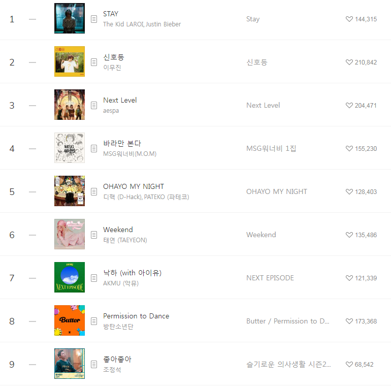 [2021년9월19일]멜론일간차트 TOP17, 1위-STAY The Kid LAROI Justin Bieber(저스틴비버/듣기/가사/동영상) 본문