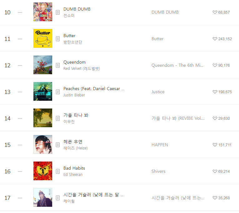 [2021년9월20일]멜론일간차트 TOP17, 1위-저스틴비버 STAY The (Kid LAROI/Justin Bieber/듣기/가사/동영상) 본문