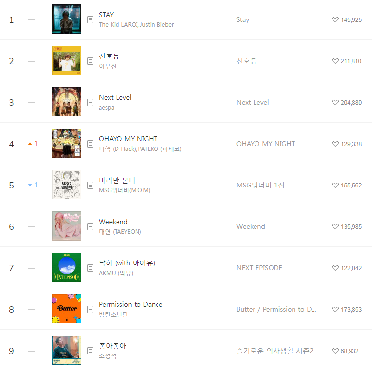 [2021년9월20일]멜론일간차트 TOP17, 1위-저스틴비버 STAY The (Kid LAROI/Justin Bieber/듣기/가사/동영상)