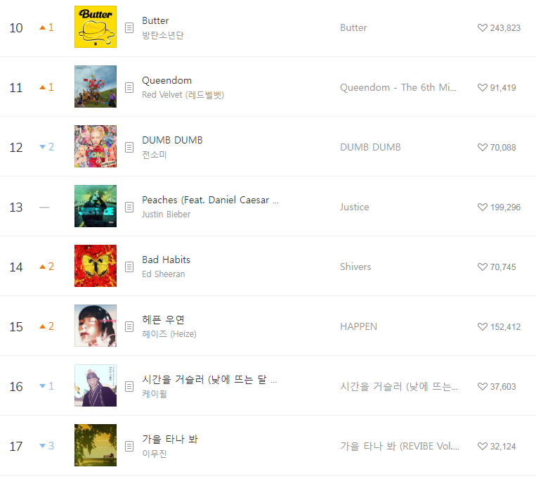 [2021년9월23일]멜론일간차트 TOP17, 1위-STAY The Kid LAROI Justin Bieber(저스틴비버/듣기/가사/동영상) 본문
