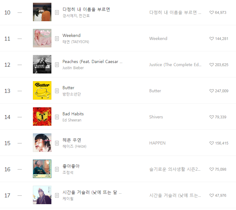 [2021년10월13일]멜론일간차트 TOP17, 1위-에스파 Savage(aespa/새비지/듣기/가사/동영상) 본문