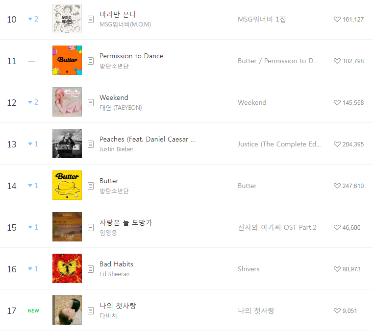 [2021년10월18일]멜론일간차트 TOP17, 1위-아이유 strawberry moon(아이유/스트로베리문/듣기/가사/동영상)
