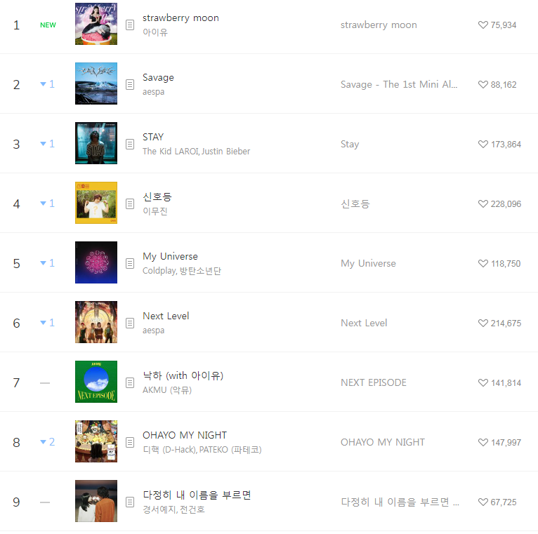 [2021년10월18일]멜론일간차트 TOP17, 1위-아이유 strawberry moon(아이유/스트로베리문/듣기/가사/동영상)